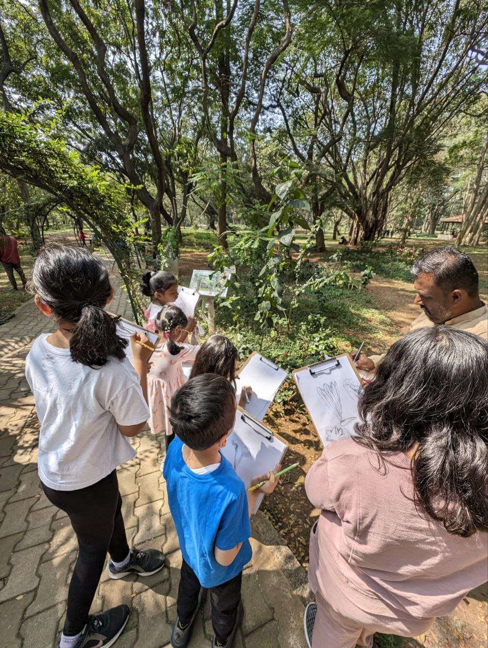 Drawing Flowers, Nature art session organized by Green Panther Club at Bangalore Cubbon Park 20th January 2024, Bangalore