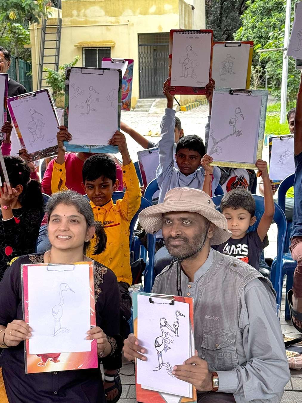 Sketching birds live, Nature art session organized by Benniganahalli Kere Community Development Trust at Benniganahalli Lake 10th August 2025, Bangalore